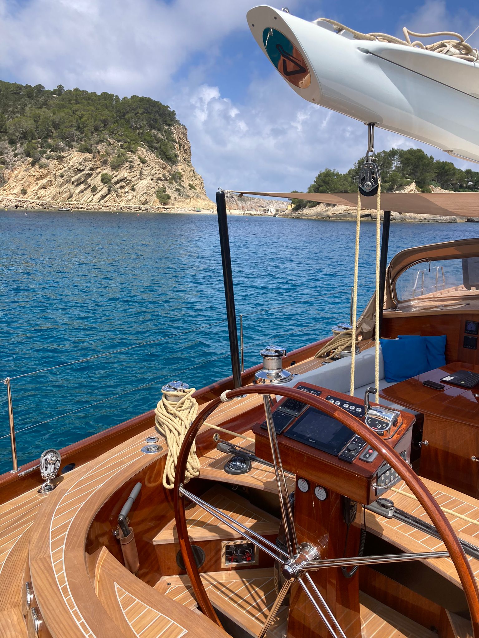 Imagine waking up in a cabin on a sailing yacht in the calm waters of Sant Antoni, Ibiza. The sun is rising, and the sea is glowing. You stretch, yawn, and jump into the clear water for a refreshing start to the day.